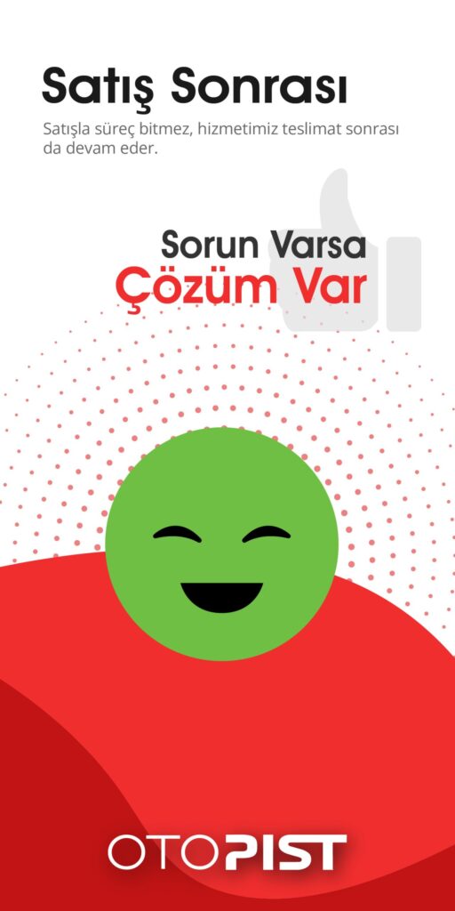 OTOPIST olarak müşteri memnuniyetini her zaman ön planda tutuyoruz ve ürünlerimizin kalitesine güveniyoruz. Satın alım sonrası sizlere sunduğumuz hizmetlerle de her zaman yanınızdayız. Ürünlerimizle ilgili karşılaşabileceğiniz her türlü soru, talep ve garanti süreci için haklı tüm beklentilerinize, hızlı ve etkili çözümler sunuyoruz.
