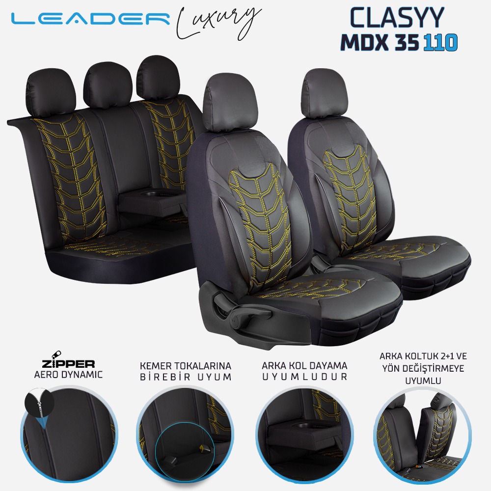 Leader CLASYY NAKIŞLI KOMPLE DERİ / Universal Oto Koltuk Kılıfı