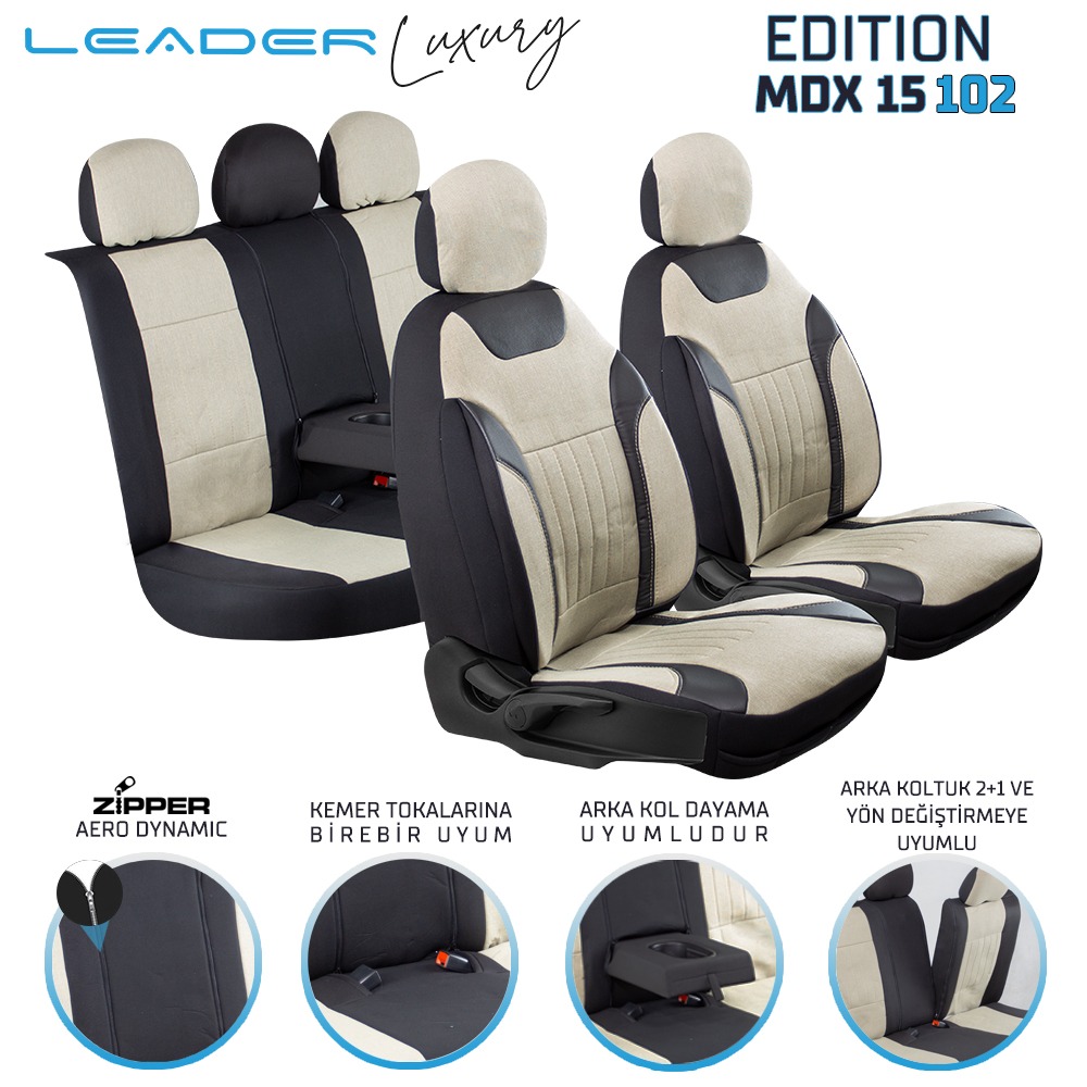 Leader Edition / Düz Keten Fermuarlı / Universal Oto Koltuk Kılıfı